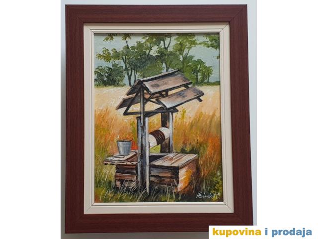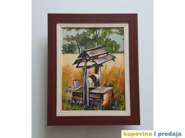 Ulje na platnu Bunar, prelepo umetnicko delo. Slika je uramljena u jako lep ram, dimenzije slike sa ramom 52 x 42. Privatna kolekcija.