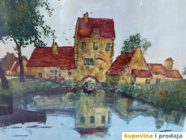Prodajem Vilerov goblen "Kuća pored reke" iz sedamdesetih godina prošlog veka. Dimenzija 40x30cm. Goblen je rađen na originalnoj šemi i koncu iz Pariza. Uramljen je i izuzetno očuvan. Preuzimanje lično. Cena 200e.