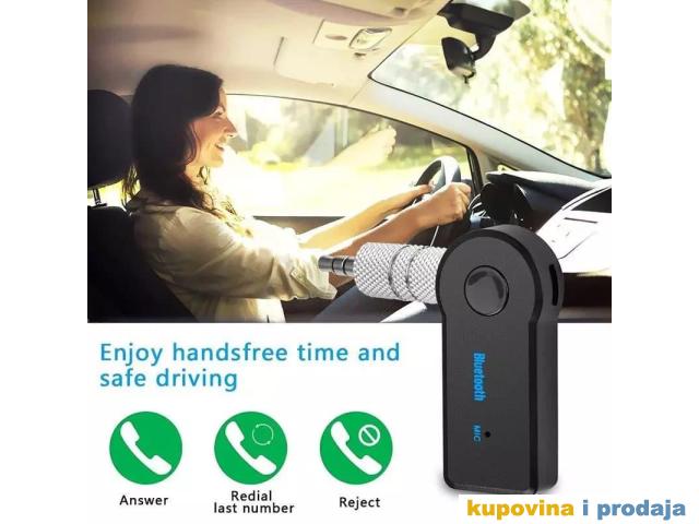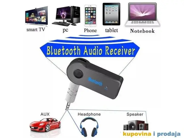 Daje bluetooth funkciju bilo kom audio sistemu u Kuci ili Automobilu, koji ima audio AUX ulaz.