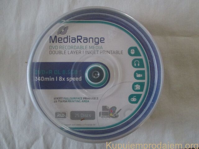 Kvalitetni MediaRange DVD+R DL 8X 8,5GB, Double Layer, Inkjet Printable, 25kom. u kutiji.