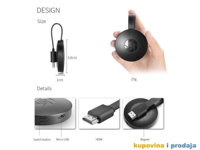 Mali i lagani dizajnZaobljena slatka veličina, baš kao i kolačić, sa magnetom spojenim HDMI kablom na poleđini, čime se štedi prostor tako da je prenosiv da ga možete koristiti bilo kada i bilo gdje-Lako povezivanje