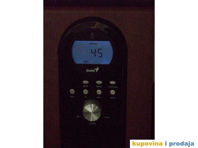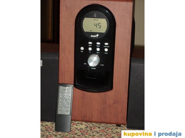Prodajem odlicno ocuvani kucni bioskop Genius 5.1 sistem sa oznakom SW 6000, sa daljinskim upravljacem i pratecim kablovima koji su dosli u pakovanju. Serija bez dugmeta za STANDBY, na kojoj se zvucnici dovode u standby rezimu smanjenjem tona na nulu (00). Zvucnici su vrlo malo  korisceni, prakticno nekorisceni, mogu se nazvati novima. Garantujem da su potpuno ispravni i neosteceni kako fizicki tako i elektronski. Za sve ostale informacije pozovite_ 0649624794