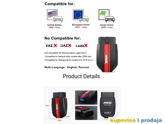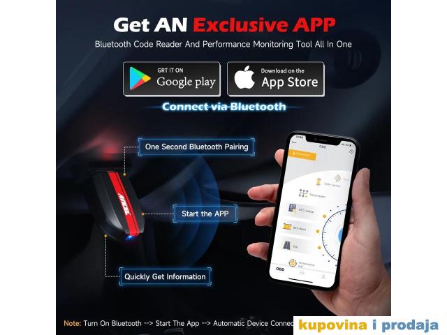 Stabilna veza : Nije samo kompatibilan sa Androidom i IOS-om, već koristi i najnovije Bluetooth 5.0 rješenje, koje omogućava proizvodu da se trenutno poveže na OBD sučelje vozila putem Bluetootha, što olakšava čitanje podataka iz ECU-a i značajno poboljšava korisnika iskustvo.