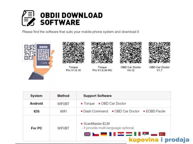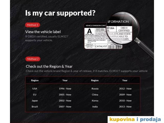 Kompatibilan je sa 1996, i kasnija vozila koja su OBD2 ili EOBD standardom.