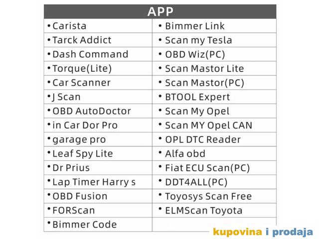 Ovaj ELM327 obično može raditi na većini novih automobila sa OBD 16pin Aadapter i 12V motora: