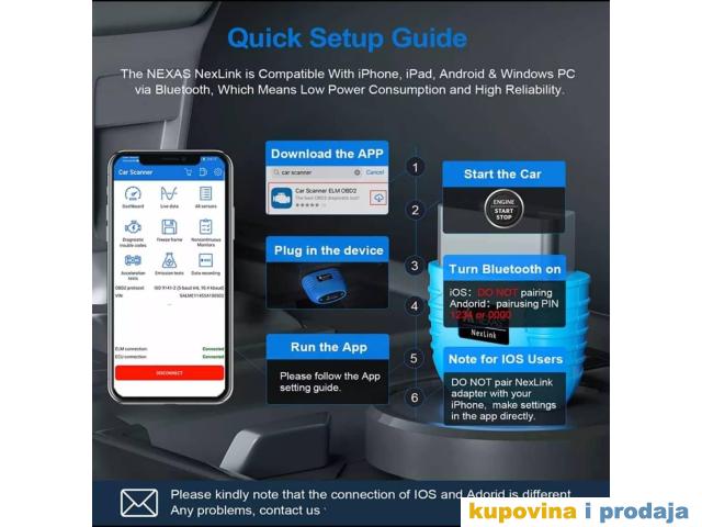 NEXAS NexLink Bluetooth IOS &Android &PC OBD2/EOBD Diagnosticki Alat za čitanje i brisanje grešaka.