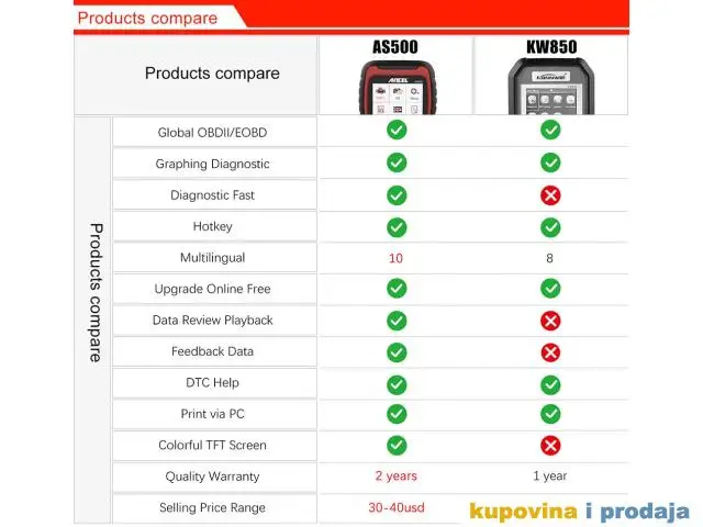 AS500 podržava i 12V dizel i benzinska vozila, sa standardnim OBDII/EOBD protokolima, sa OBDII 16-pinskim dijagnostičkim portom.