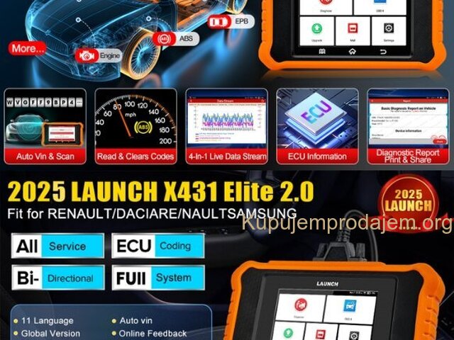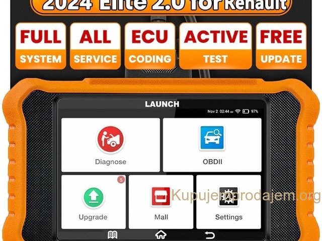 LAUNCH X431 Elite 2.0 Dizajniran posebno za Reno i Dačiju, alati za dijagnostiku svih sistema automobila, kodiranje ECU-a, dvosmerno testiranje, sva resetovanja, automatsko skeniranje VIN-a, doživotno besplatno ažuriranje.