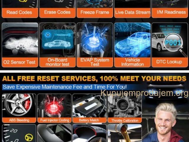 Ovaj profesionalni dijagnostički skener takođe može da čita/briše kodove, pregleda prenos podataka uživo i zamrzne sliku, čita informacije o ECU-u, obavlja posebne funkcije i aktivno testiranje kako bi bezbedno i efikasno održavao sisteme automobila.