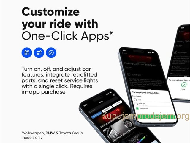 Možete nabaviti unaprijed napravljene aplikacije za kodiranje pod nazivom One-Click Apps za prilagođavanje karakteristika vašeg automobila jednim dodirom na pametnom telefonu. Možete kupiti svoje omiljene aplikacije jednim klikom uz kredite u aplikaciji.
