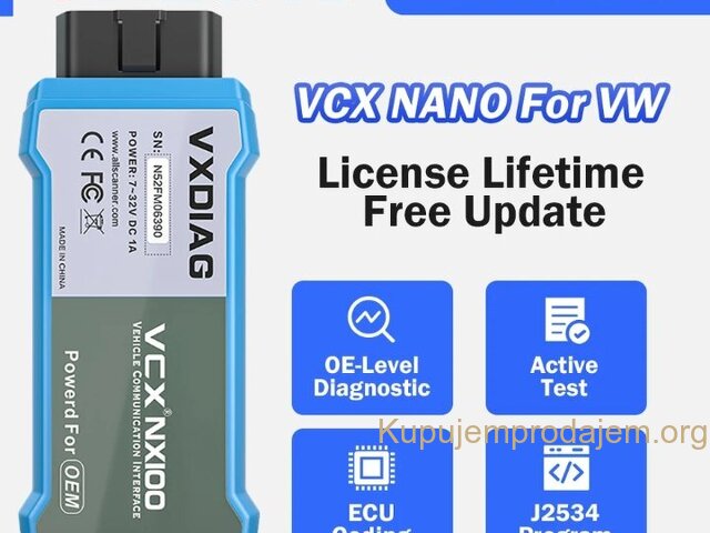 VXDIAG VCX NANO NX100 WiFi za VW Audi J2534 Programiranje 5054A 6154A ECU kodiranje Alat za dijagnostiku svih sistema NE BAVIM SE AUTOELEKTRIKOM! ! SAMO PRODAJA ! ! ✔ Ν Α Ν Ο NX100 podržava auto godinu od 2005 do sada za VW, uključujući Audi, Škodu, Seat, Bentley. (99% podrške za modele automobila). ✔ Podrška za programiranje/kodiranje ECU-a, podrška za online programiranje/offline inženjersko programiranje. Podrška za punu funkciju dijagnoze sistema. ✓ Podržava više od 30 više posebnih funkcija (resetiranje zračnog jastuka, EPB/SAS/BMS/TPMS/DPF, itd. ) ECU programiranje i funkcija kodiranja ✓ Podrška NANO NX100 skenera za programiranje ECU-a i popravljanje softverski kontroliranih performansi vožnje i problema s emisijom. ✔ Programiranje: možete preuzeti novu verziju softvera iz baze podataka servera na mreži i reprogramirati je na ECU. ✓ Kodiranje: programirajte prilagodljive podatke za upravljačke module automobila nakon popravke ili zamjene dela vozila. ✔ Podrška za online programiranje i kodiranje ili možete koristiti softver eingeer za vanmrežno kodiranje, programiranje Ν Α Ν Ο Ν Χ100 Podržava J2534 protokol OBD2 podržava SAE J2534 i ISO 22900 PDU protokole Podržani su sledeći sistemi vozila: K linija (ISO9141-2) Brzi CAN (ISO 11898-2) CAN male brzine (ISO 11898-3) J1850 (SAE J1850) UDS protokol PWM protokol *VCX NANO podržava SAE J2534 i ISO 22900 PDU protokole. Uređaj treba da radi sa laptopom, možete ga povezati sa laptopom preko USB kabla ili WIFI. Podržava WIFI i USB komunikaciju za prijenos podataka vozila na laptop putem dijagnostičkog softvera. Podrška za rad na Windows 7 i Windows 10 sistemu (ne podržava Home sistem) Sve funkcije dijagnostike sistema Aplikacija obavlja funkcionalne testove, preuzima dijagnostičke informacije vozila kao što su kodovi problema i događaja i živi podaci za različite upravljačke sisteme vozila, kao što su ABS, SRS, motor, mjenjač, ​​kočioni sistem, sistem emisije, sistem goriva, sistem svetla, sistem brisača itd. NANO NX100 Podržava 30+ više specijalnih funkcija Za različite planirane servise i održavanje uključuju resetiranje svetla za održavanje, učenje gasa, učenje ugla upravljanja, resetiranje kočionih pločica, resetiranje pritiska u gumama, ABS izduv, usklađivanje baterije, učenje informacija o brzinama, kodiranje brizgaljki, regeneraciju DPF-a, usklađivanje farova, učenje menjača, usklađivanje ovjesa, Inicijalizacija krovnog otvora, A/F podešavanje, elektronsko pokretanje pumpe, način transporta otpuštanja, modifikacija guma, kalibracija vrata i prozora, resetovanje uree, resetovanje NOx, postavka start-stop, podešavanje jezika, kalibracija sedišta, kvar štitnika, itd. Aktivna test funkcija Aktivni test Proces slanja i preuzimanja informacija iz kontrolnog modula vozila sa uređajem poznat je kao test aktiviranja ili dvosmjerna kontrola. Glavni cilj funkcije testiranja aktiviranja je da zatraži od upravljačkog modula da izvrši određenu funkciju, uključujući sistemske testove, testove aktuatora, funkcionalne testove, testove inspekcije, reprogramiranje ili reinicijalizaciju. Npr. : Priključili ste merač tlaka goriva, vratili ključ i pokrenuli motor, ali niste mogli ništa shvatiti u vezi pritiska goriva. Pomoću funkcije testiranja aktiviranja ovog dijagnostičkog alata možete poslati naredbu pumpe za gorivo prema instrukciji i videti ispravan tlak goriva, otkrivajući postoji li problem sa krugom pumpe za gorivo ili pumpom. Ν Α Ν Ο Ν Χ100 Puna OBD2 funkcija: 1. Čitanje kodova; 2. Erase Code; 3.1/M Status spremnosti; 4. Read Live Data Stream; 5. View Freeze Frame Data; 6.02 Test senzora; 7. Test monitora na vozilu; 8. Pročitajte informacije o vozilu. 9. DTC traženje; 10. test EVAP sistema. Besplatno ažuriranje licence i firmvera uređaja Jezici: Engleski / hrvatski / danski / nemački / mađarski / švedski / finski / slovenački / češki / ruski / grčki itd. Saveti: 1. Uređaj je sa doživotnom licencom, ako vidite da vreme licence ima samo 60 dana, to je normalno, licenca se može besplatno ažurirati u VX-Manageru. 2. Ne podržava pružanje originalnog softvera, molimo vas da ga kupite legalnim kanalima. 3. Ne zaboravite da nadogradite firmver, licencu i drajver nakon što instalirate novu verziju VX-Manager V1.8.4.0315. 4. Ne podržavamo pružanje online naloga za onlajn programiranje. Možete ga kupiti sami. Pakovanje sadrzi: 1 x NANO NX100 uređaj 1 X USB kabel Link za skidanje softvera Produzni OBD2 kabel ( opcionalno! ) [+20,00 € ] foto 15.