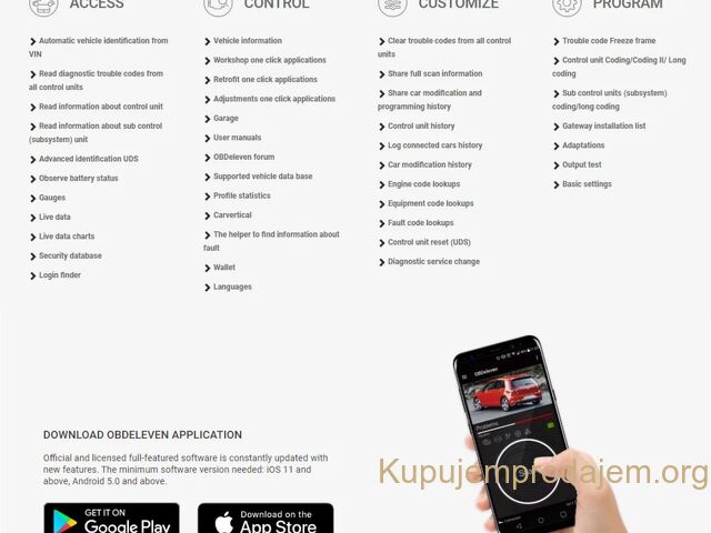 Za kompletnu listu podržanih funkcija, pogledajte OBDeleven Mobile App.