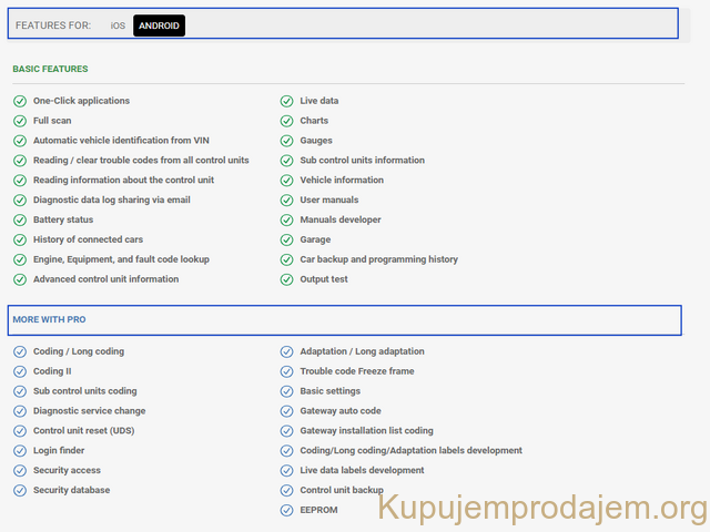 Ako želite da nadogradite svoju opremu i poboljšate korisničko iskustvo, ili ste entuzijasta automobila - PRO Pack će vam dati alate za pokretanje detaljne dijagnostike na nivou proizvođača.