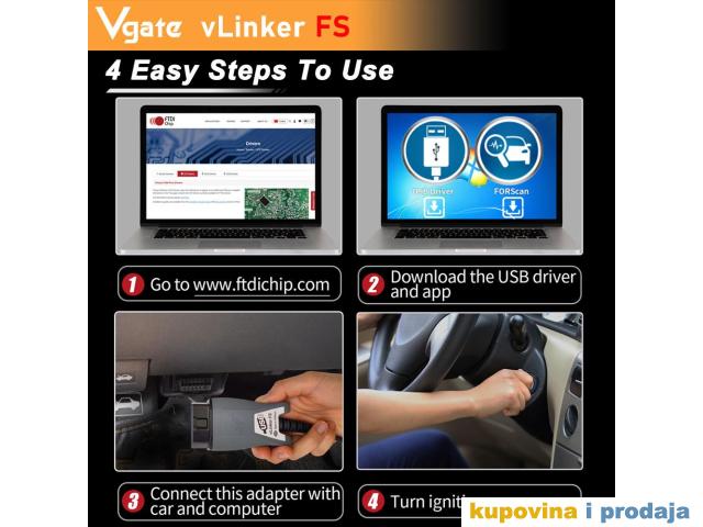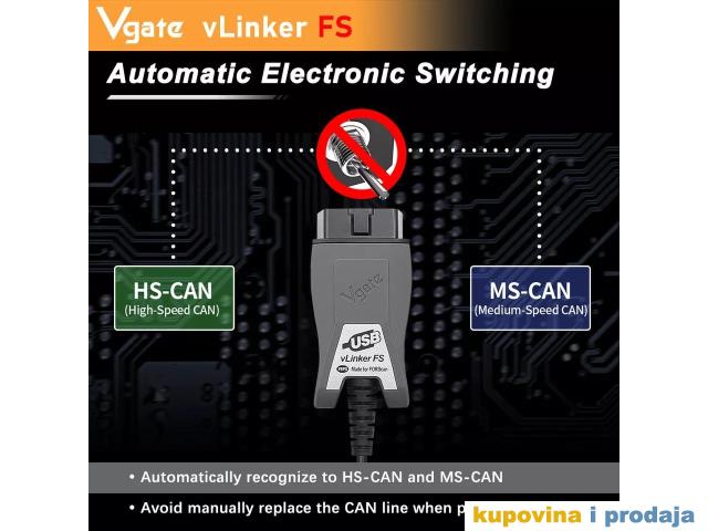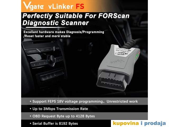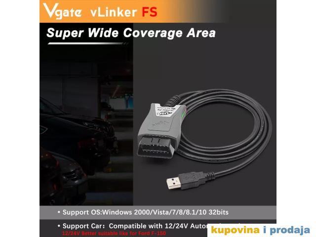 Vgate ELM327 vLinker FS OBD2 auto skener za Ford, Mazdu MS-CAN/HS-CAN Dijagnostički alat, Automobilski skener.