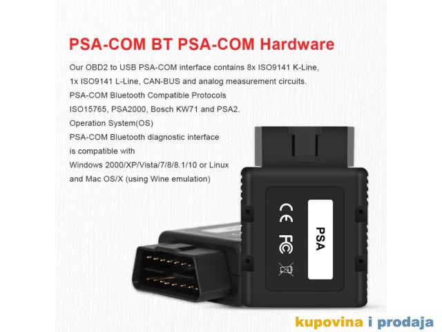 PSA-COM Bluetooth dijagnostički interfejs je kompatibilan sa Windows 7 ili Linux i Mac OS/X (koristeći Wine emulaciju)