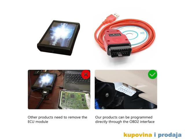 možete lako da programirate i izbrišete memoriju i uvedete jedinice bez rastavljanja ECU-a, EPROM-a i Fleš-a.