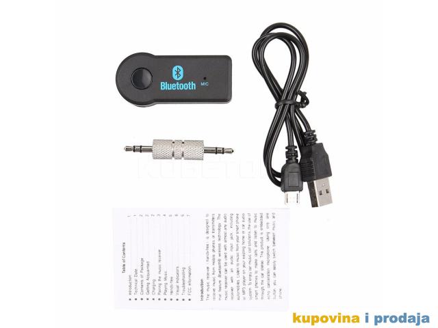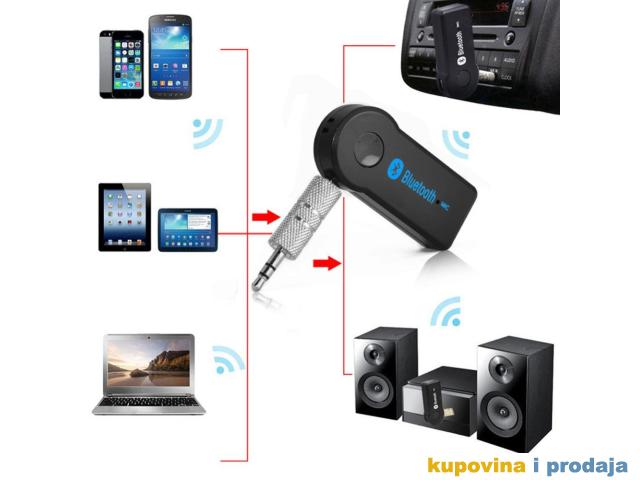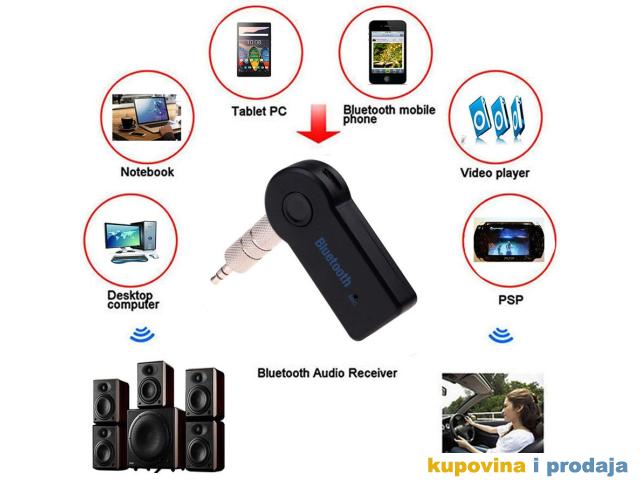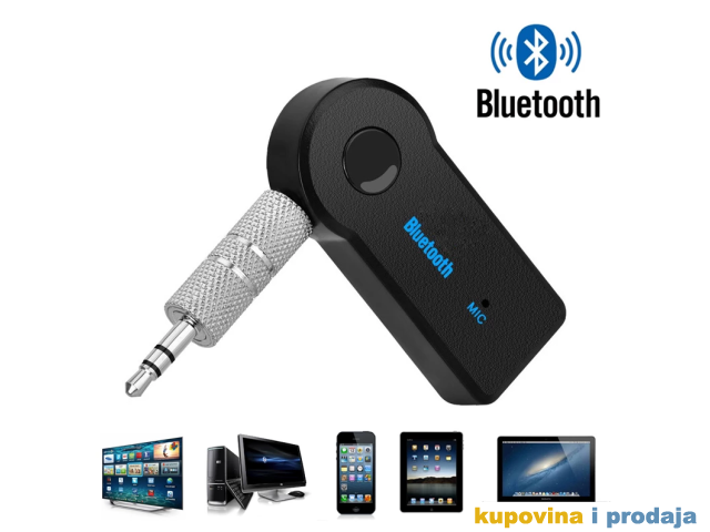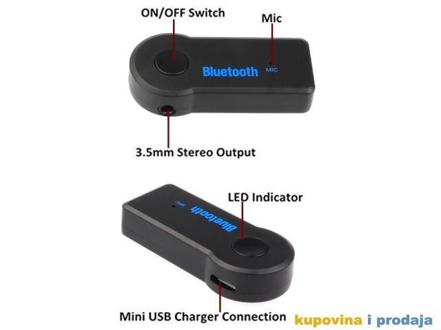 Daje bluetooth funkciju bilo kom audio sistemu u Kuci ili Automobilu, koji ima audio AUX ulaz.