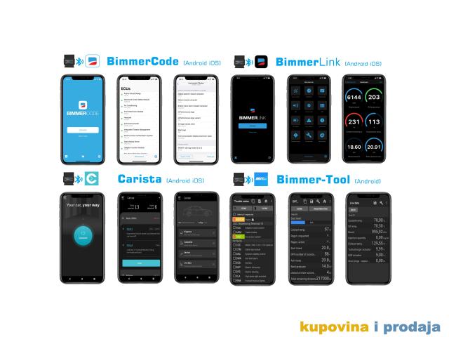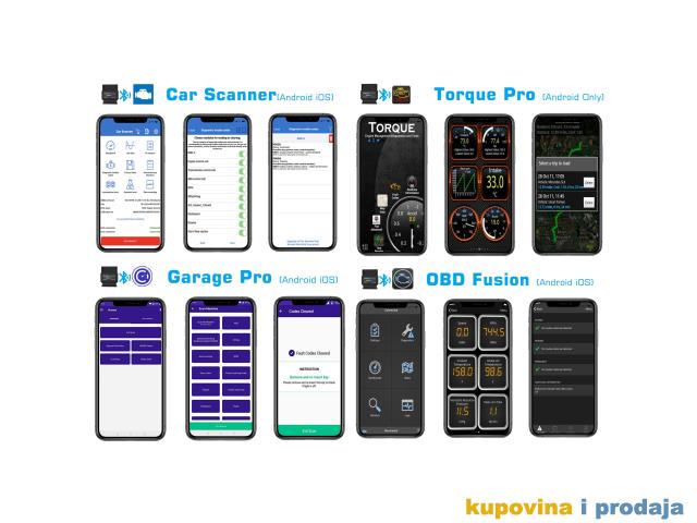 Kompatibilne APLIKACIJE (više dostupno na App Store-u i Google Play-u; može zahtevati posebnu kupovinu) OBD Fusion, Torque Lite/Pro (samo za Android), DashCommand, BimmerCode, BimmerLink (samo iOS), Carista OBD, JScan, Dash, OBD Auto Doctor,   TrackAddict, LeafSpy Pro, Dr. Prius, Harry's LapTimer, OBD Fusion, DashCommand, OBD Auto Doctor, itd.