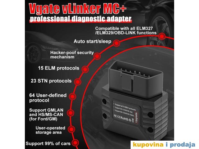 Vgate vLinker MC+ Bluetooth OBD-II adapter omogućava pristup SW-CAN &MS-CAN mrežama kao dodatak svim zakonskim OBD-II protokolima.