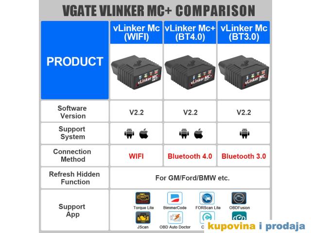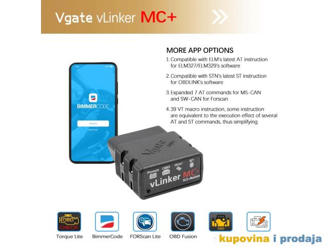 Vgate vLinker MC serija je nadograđena verzija Vgate iCar Pro , posebno za kodiranje APP-a koji zahtijeva veliku količinu prijenosa podataka.