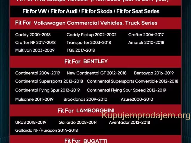 Kompatibilan za Volksvagen: Radi sa većinom 2006 i novijim, za Audi, za Bentlevsold u Severnoj Americi