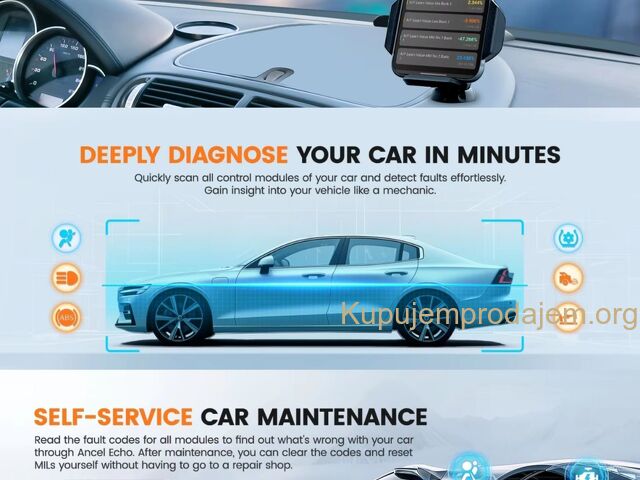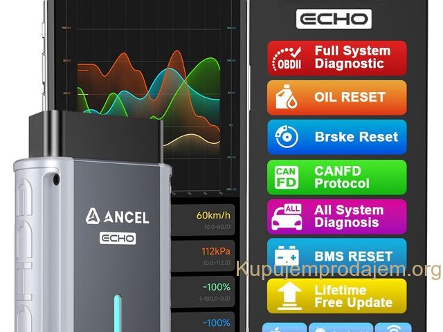 – Za razliku od mnogih konkurenata koji nude ograničene tokove podataka, Ancel Echo prikazuje podatke u realnom vremenu za sve sisteme, kao što su prenos (temperatura tečnosti u menjaču, status stepena prenosa, ulazni i izlazni broj obrtaja), kočioni sistem (kočnica Pritisak tečnosti) i BCM (napon baterije).