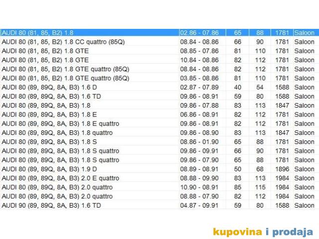 Na prodaju je nov hladnjak za Audi 80 za motore od 1.6 do 2.0 benzin. Od godista 1986 do 1994 odgovara za modele. Hladnjak je nov i proizvoden je u Kini pre kupovine obavezno se javite radi dogovora i provere da li vam deo odgovara za auto zbog toga dao sam i listing za koje automobile odgovara deo, kataloski broj hladnjaka je OE 893 121 251 .