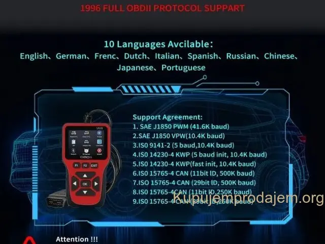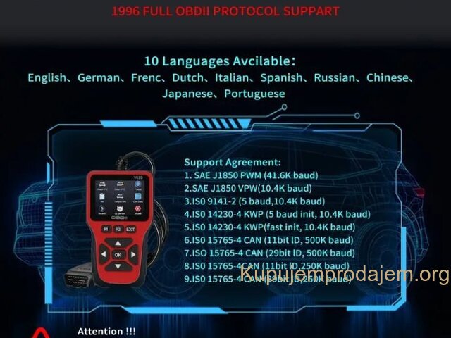 Čitač koda OBD2 za automobile dizajniran je da bude kompatibilan s većinom vozila proizvedenih nakon 1996. godine u SAD-u, 2000. godini u EU i azijskim zemljama. Ako vaš automobil ima 16-pinski OBD2 port.