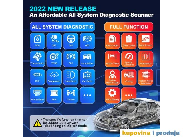 Za napredne funkcije kao što su aktivni test, sva dijagnostika sistema i usluge održavanja, pokriva 95% modela automobila dostupnih na tržištu uključujući: