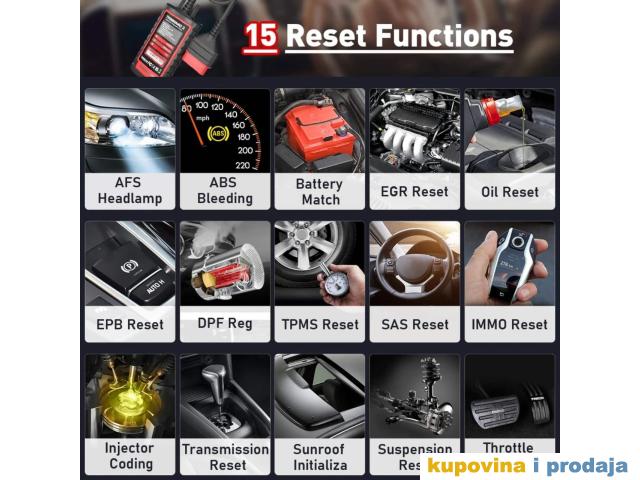 1 godina softver, 15 funkcija resetovanja ECU kodiranja, dijagnostički skener za iOS i Android.