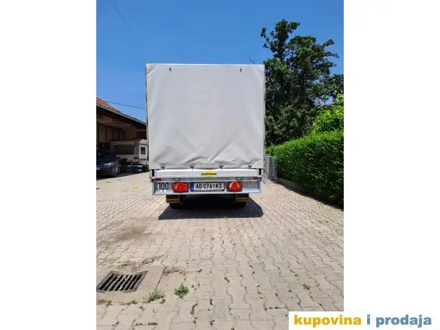 Iznajmljujem nove bocmann auto šlepe/prikolice 4x2m sa navozima i čekrkom. Nosivost 2000kg. Moguć i uslužan prevoz mašina, traktora i automobila po ceni od 60din po predjenom kilometru.Izražena cena je za 1dan/24h.Minimalno vreme za iznajmljivanje je 1dan/24h.Iznajmljivanje na više od 3 dana 15evra po danu.Po dogovoru cena za iznajmljivanje na duze od 15 dan...