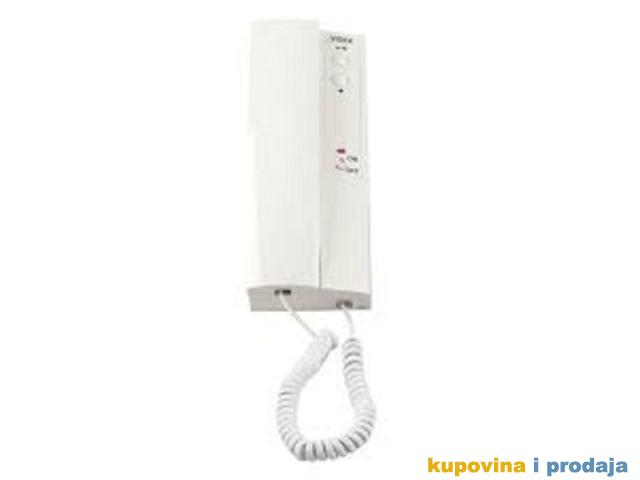 Pouzdan i kvalitetan audio intefonski set Videx 8K-1S A sa jednom slušalicom. Set se sastoji od spoljne jedinice, napajanja i unutrašnje slusalice. Spoljnja jedinica je izrađena od nerđajućeg čelika i aluminijuma. Unutrašnja jedinica je sa slušalicom, dugmetom za otvaranje kapije i dugmetom za podešavanje zvona. Moguće je povezati jos 2 dodatne slušalice paralelno.