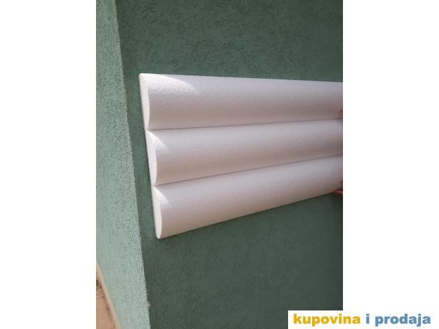 Oblica od stiropora za izolaciju, dekoraciju. Oblica je cisto bela obradjujete je po svojoj zelji i ukusu. . . Dimenzije Duzina 1m, sirina 16cm, i debljina 7,5cm