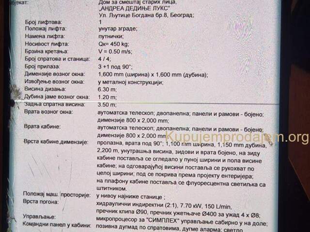 Dimenzije voznog okna: 1,100mm (š), 1,150mm (dubina), 2,200mm unutrašnja visina.