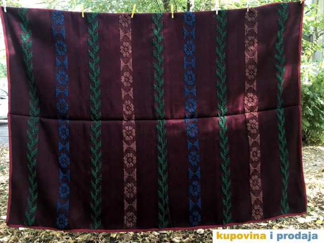 Prekrivač od čiste vune sa jednim licem.Nekorišćeno - kolekcionarski primerak, u odličnom stanju.Dimenzije 146 x 208 cm.