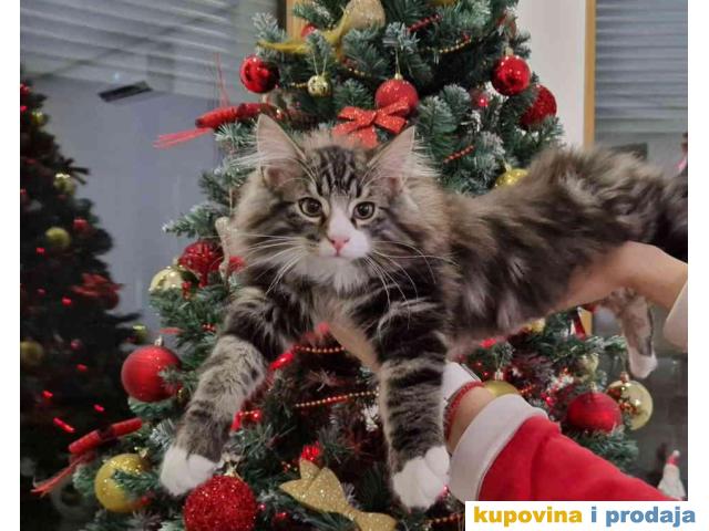 Međunarodno registrovana odgajivačnica Norveških šumskih mačića BOBANAS (FiFe) Mačić i - 2 mužjaka, beli i tigrasti (mramorasti tabi( sa belim. Mačke posebnog karaktera. Naviknute na kućne uslove kao i druge životinje (pse i ptice). Mačići su vakcinisani, očišćeni od parazita, mikročipovani i pedigrirani.