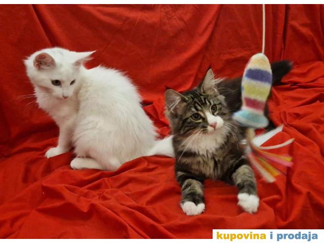 Međunarodno registrovana odgajivačnica Norveških šumskih mačaka BOBANAS (FiFe) Mačići - 2 mužjaka, beli i tigrasti (mramorasti tabi) sa belim. Mačke posebnog karaktera. Naviknute na kućne uslove kao i na druge životinje (pse i ptice). Mačići su vakcinisani, očišćeni od parazita, mimkročipovani i pedigrirani. Rodjeni: 19. 09.2023.