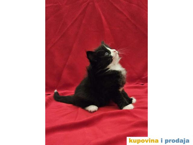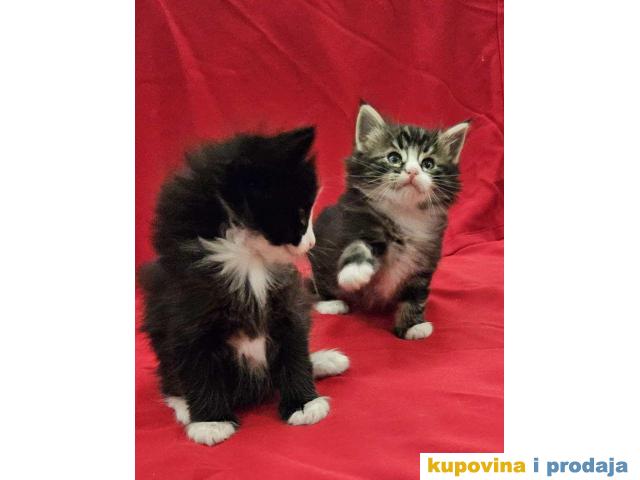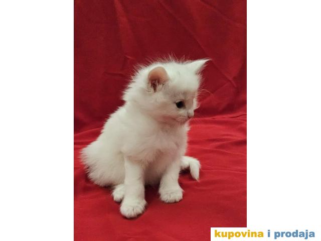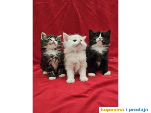 Mačići - 3 mužjaka, beli, crno beli i tigrasti (mramorasti tabi) sa belim . Mačke posebnog karaktera. Naviknute na kućne uslove kao i na druge životinje (pse i ptice).