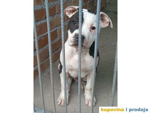 Povoljno na prodaju štenci americkog stafordskog terijera, ataxia clear, oštenjeni 14.8. Kontakt telefon: 063552221