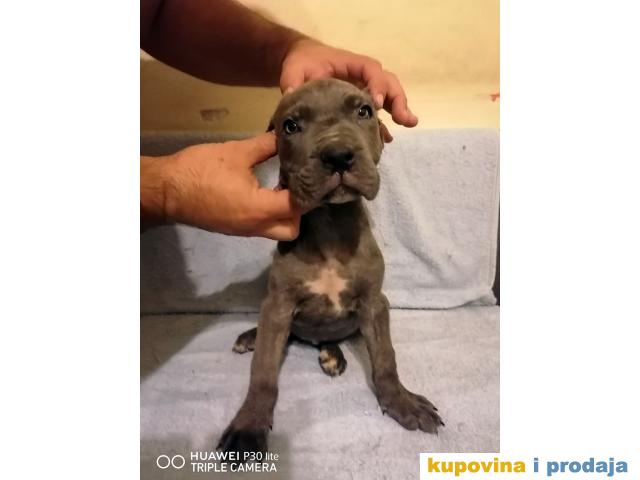 Cane Corso štenad spremni za preuzimanje. Oštenjeni 15.08.2019. Sivi mužjak i ženka i formentino mužjak i ženka dostupni. Štenad su očišćeni od parazita, primili dve vakcine, sivi su kupirani, sa rodovnikom i kartonom vakcinacije.