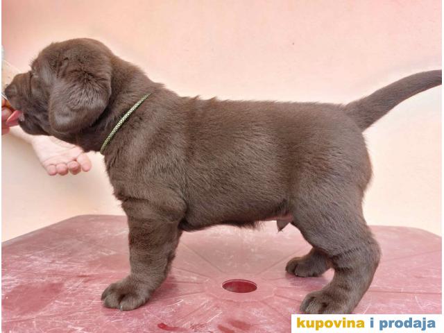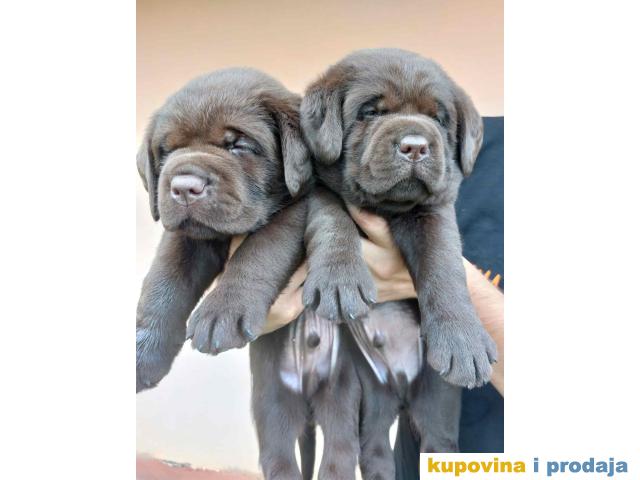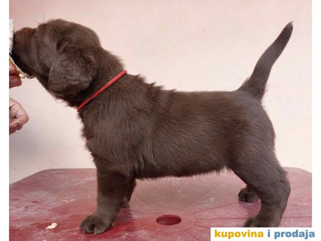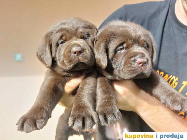 "Na prodaju čokoladni štenci labrador retrivera, oštenjeni 25.06.2023. Dostupni za rezervaciju i preuzimanje od 14.08. nakon druge vakcine, do sada čišćeni od parazita.