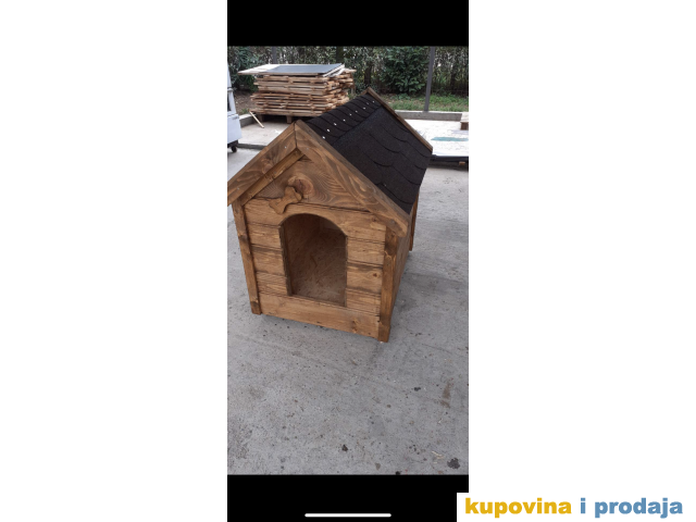 Kucica za velike pse. Dupli zidovi o punog drveta zasticeni sadolinom spolja,pod je dodatno odozdo izolovan stiroporom ,krov je pokriven tegolom i jedna strana se skida radi lakog ciscenja. Odlicna i cvrsta ,kvalitetan rucni rad.