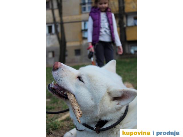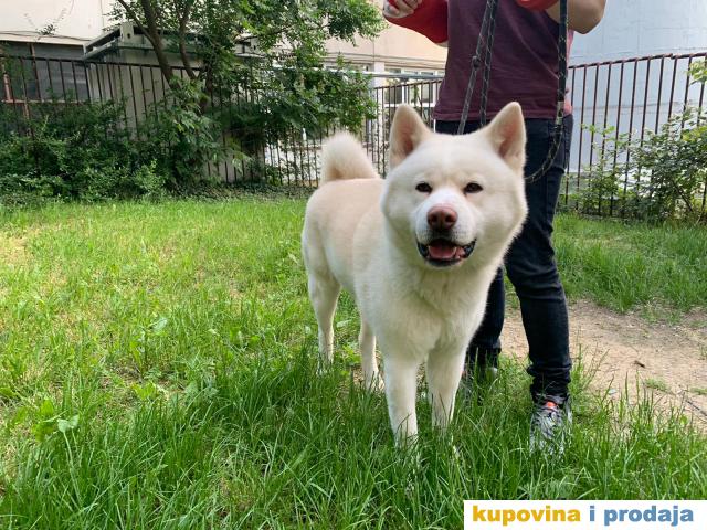 Beli muzjak Akite star 6 godina sa dobrim papirima, trazimo zenku za parenje zbog zdravlja psa, nije paren do sada.