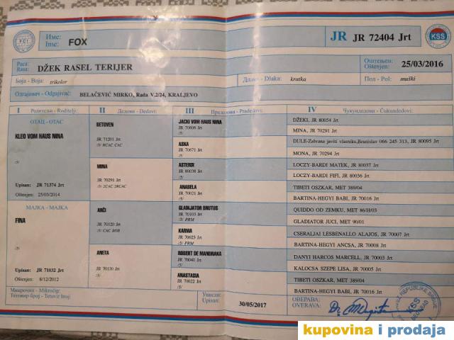 DZEK RASEL TERIJER – muzjak star 3,5 godine, slobodan za parenje. Prvak razreda mladih 2017.