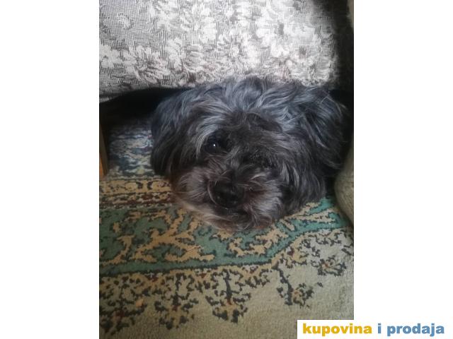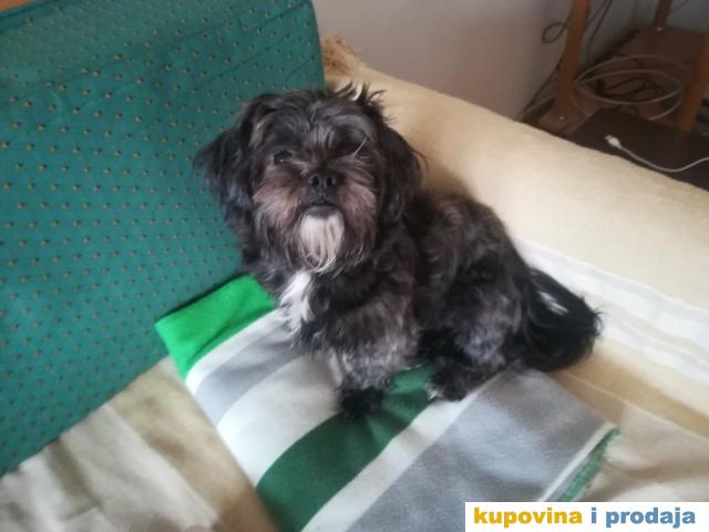 Prelepi mešanac, mužjak, majka Maltezer, otac Pekinezer, crni sa belim tufnama, u decembru 2019. puni tri godine, odnegovan, cist,