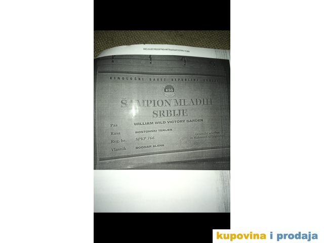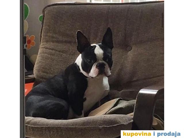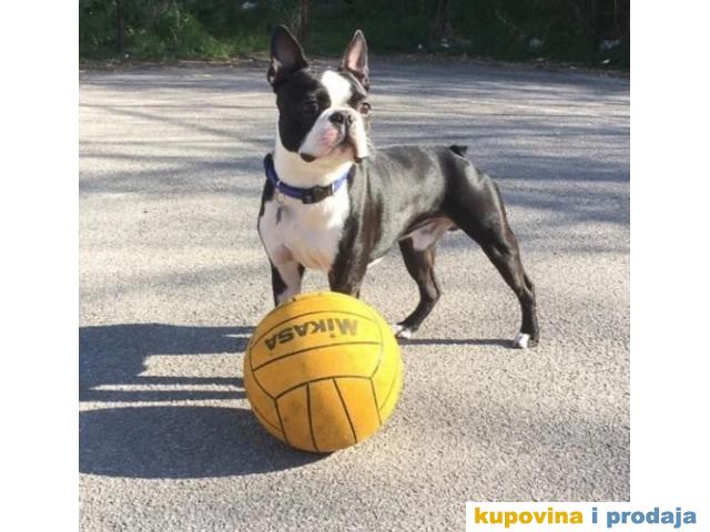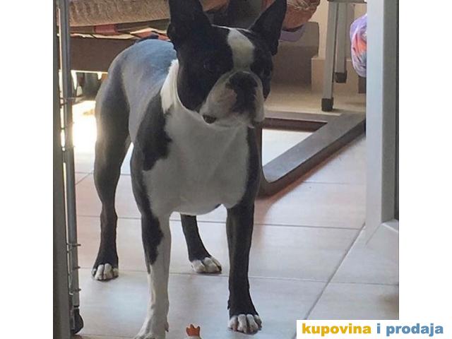 Muzijak Bostonskog terijera,sampionskog porekla,star 2 godine , spreman za parenje APACH DI PORTA VITTORIA ,star 2 godine ,sampionskog porekla spreman za parenje. Negativan na sve genetske bolesti(uradjeni genetski testovi) Otac -WILLIAM WILD VICTORY GARDEN Dedovi-1)CAMPBELL CLANS MR.GOODY TWO SHOES,2)HEARTLY COSTA RICA Majka-NIKA WHITE DRAGON KARTELL Dedovi-1)LORD,2)NENSI Kontakt 0692502103