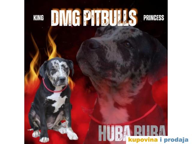 Odgajivačnica američkih PITBULL terijera DMG PITBULLS ima na prodaju štence raznih boja od kvalitetnih roditelja. Roditelji štenaca su od vrhunskih primeraka rase, odlični kukovi, fantastičnog karaktera i izgleda. Štenci se prodaju vakcinisani, očišćeni od parazita, sa čipom i pasošem po želji. Moguće bilo koje testiranje kod odabranog veterinara na račun kupca. Izaberite štene iz odgajivačnice sa najvećim rezultatima i iskustvom.