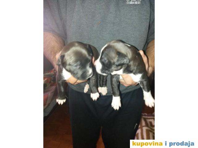 Na prodaju stenci Americkog Pitbull Terijera, rodjeni 20.10.2018. Roditelji Ozzy Panther cokoladno beli muzjak i bela zenka Bella, oba roditelja u vlasnistvu iz vrhunskih legla.Stenci su ocisceni od parazita, prvu vakcinu primaju 20.11.2018. i tada su spremni za preuzimanje, ima 5 muzjaka i 8 zenki(7 belih, 4 cokoladno bela i 2 crno bela).