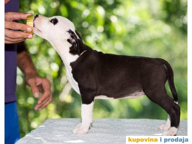 Na prodaju stenci Americkog Stafordskog Terijera,izlozbenog kvaliteta,sampionskog porekla i savrsenog temperamenta. Redovno cisceni od parazita,vakcinisani i revakcinisani,i spremni za preuzimanje.