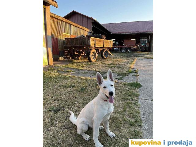 Beli svajcarski ovcar za prodaju, star 6 meseci, lep, razvijen pas, mnogo voli decu, od kvalitetnih roditelja, zenka, EU pasos.